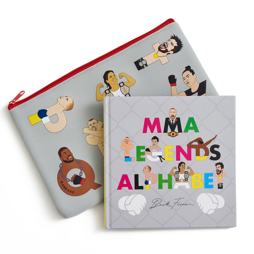 The perfect gift for young MMA in fans. It includes a copy of our MMA Legends Alphabet books ($24.95) and an oversized Neoprene iPad/pencil case ($14.95)